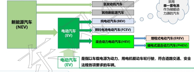 是指采用非常规的车用燃料作为动力来源(或使用常规的车用燃料、采用新型车载动力装置),综合车辆的动力控制和驱动方面的先进技术,形成的技术原理先进、具有新技术、新结构的汽车(非常规的车用燃料指除汽油、柴油、天然气、液化石油气、乙醇汽油、甲醇、二甲醚之外的燃料).